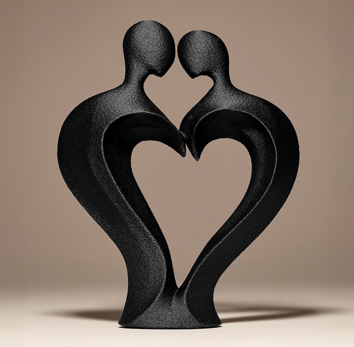 Celebrate the beauty of connection with this breathtaking abstract sculpture of a couple. Using fluid, sweeping lines, the two figures lean toward one another, their silhouettes merging to form a perfect heart in the space between them. 🖤