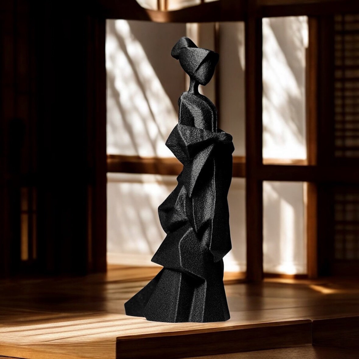 Featuring sharp, layered planes that mimic the volume of a heavy gown and a minimalist, this Geisha bridges the gap between classic portraiture and modern low-poly art. 🏯