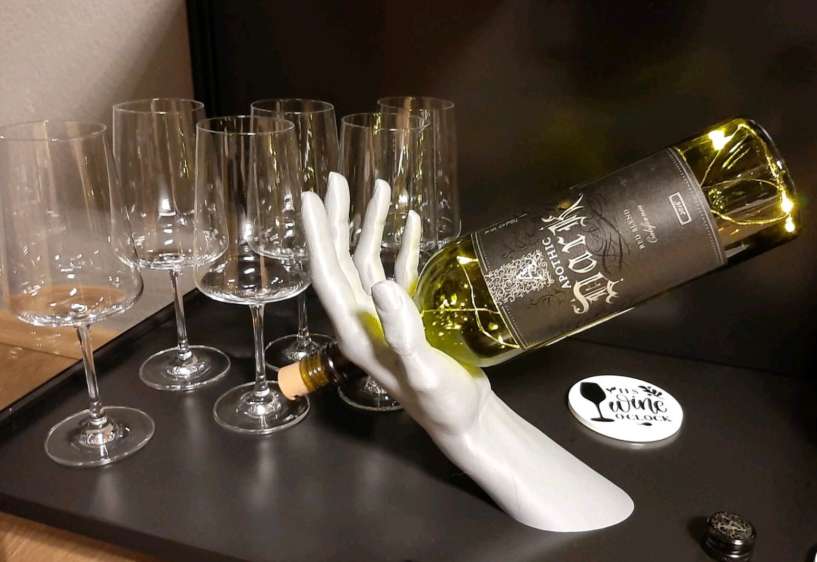 Elevate your wine experience with a touch of surrealism. “The Sommelier’s Hand” is a masterpiece of balance and form, designed to cradle your favorite vintage in a graceful, lifelike grip. This sculptural holder transforms any bottle into a captivating centerpiece, blending the classical beauty of anatomical art with modern functionality. Perfect for your dining table, wine cellar, or as an unforgettable gift for a true connoisseur.