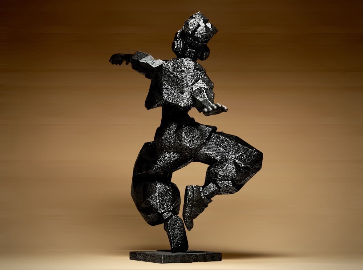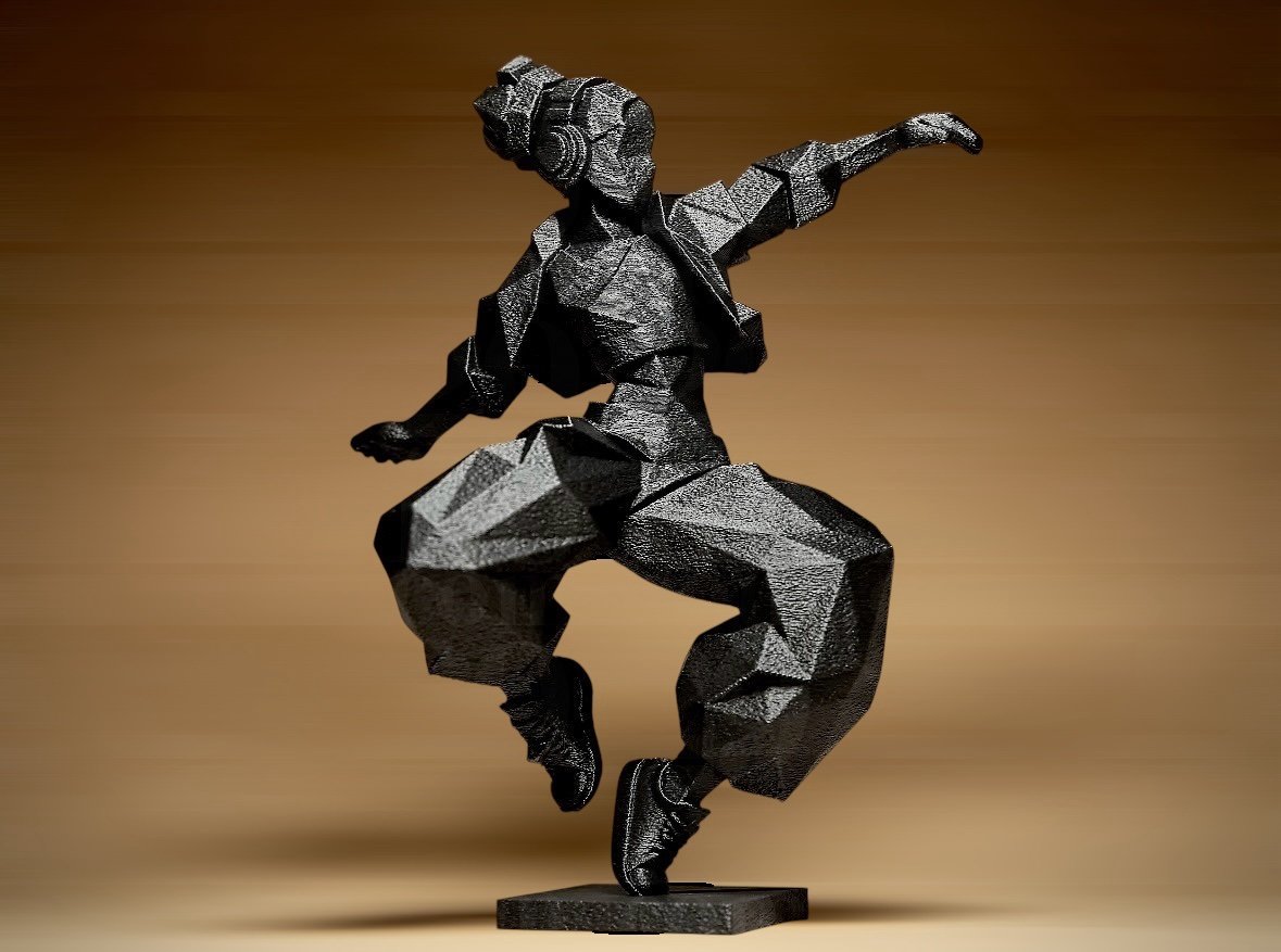 Capture the joyous energy of urban dance with this high-intensity figure. Utilizing sharp, crystalline facets to define baggy streetwear and a dynamic, mid-air pose, this sculpture is a masterclass in low-poly motion. It serves as a bold, contemporary tribute to movement and self-expression, making it a standout piece for a modern lounge or a creative workspace.